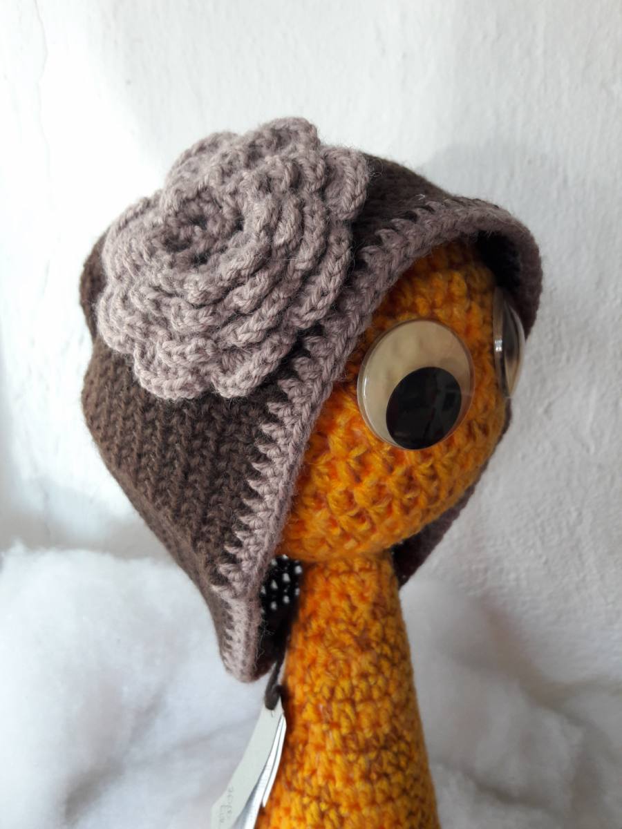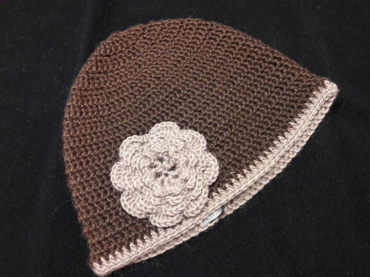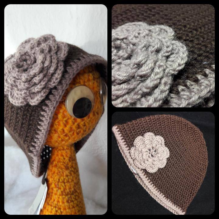 Kvačkana kapa Čokolada je ročno izdelana. Kapa je kvačkana v čokoladno rjavi barvi, modna in zelo prijetna za nošenje. Kapo pri strani krasi kvačkana rožica v svetlo rjavi barvi. Ročno nakvačkana kapa je na razpolago je v velikosti S.