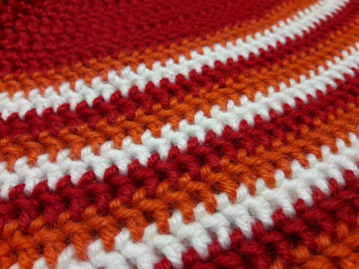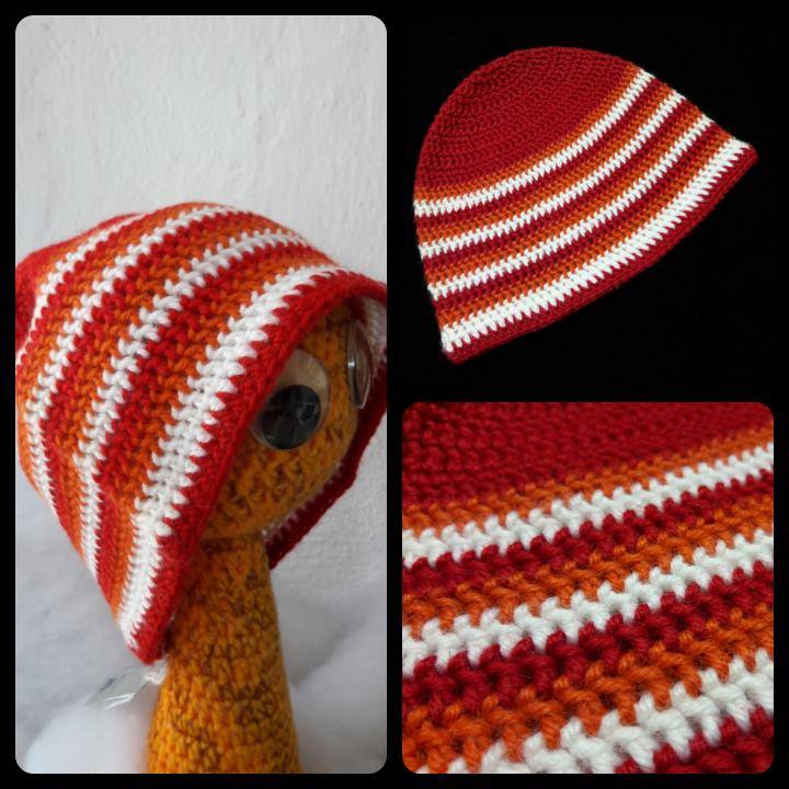 Kvačkana kapa Pomaranča je ročno izdelana. Kapa je kvačkana v rdeči, oranžni in barvi, modna in zelo prijetna za nošenje. Ročno nakvačkana kapa sje na razpolago je v velikosti M.